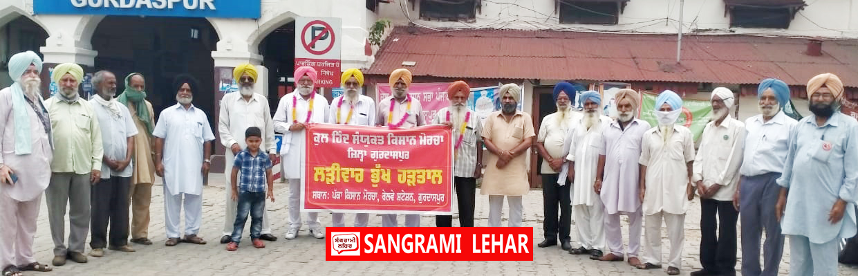ਗੁਰਦਾਸਪੁਰ, 10 ਜੁਲਾਈ (ਸੰਗਰਾਮੀ ਲਹਿਰ ਬਿਊਰੋ)- ਸਥਾਨਕ ਰੇਲਵੇ ਸਟੇਸ਼ਨ ‘ਚ ਚਲਦੇ ਮੋਰਚੇ ਦੌਰਾਨ ਅੱਜ 200ਵੇਂ ਜਥੇ ਨੇ ਭੁੱਖ ਹੜਤਾਲ ਰੱਖੀ, ਜਿਸ ‘ਚ ਸਾਬਕਾ ਸੈਨਿਕਾਂ ਨੇ ਭਾਗ ਲਿਆ। ਅੱਜ ਸੂਬੇਦਾਰ ਦਲਬੀਰ ਸਿੰਘ ਡੁੱਗਰੀ, ਕੁਲਬੀਰ ਸਿੰਘ ਗੁਰਾਇਆ, ਸੂਬੇਦਾਰ ਪ੍ਰੀਤਮ ਸਿੰਘ ਡੁੱਗਰੀ, ਪੇਟੀ ਅਫ਼ਸਰ ਸੁਰਜਣ ਨੇ ਭੁੱਖ ਹੜਤਾਲ ‘ਚ ਸ਼ਮੂਲੀਅਤ ਕੀਤੀ।