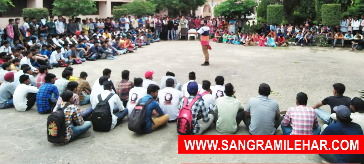 रतिया : हरियाणा छात्र यूनियन व खालसा कॉलेज के प्राचार्य डॉ विकास आनंद अध्यक्षता में पूर्ण स्टाफ के सहयोग के साथ शहीद भगत सिंह के जन्मदिन को समर्पित खालसा त्रिशताब्दी राजकीय महाविद्यालय मैं समाज मे फैल रही नशाखोरी गुंडागर्दी के ऊपर नाटक मेला करवाया गया नाटक टीम red arts punjab पंजाबी यूनिवर्सिटी पटियाला के साथियों ने नौजवानों को नशे से दूर होने का संदेश दिया नाटक में हो रही नशे से बर्बादी के रूप में दिखाया गया कि किस प्रकार नौजवान नशा कर कर मौत के मुंह में जा रहे हैं वह घर परिवार को बर्बादी के रास्ते धकेल रहे हैं कॉलेज यूनिवर्सिटी में फैला रहे नशे गुंडागर्दी के खिलाफ एकजुट होकर विद्यार्थियों को का संदेश दिया जो राजनीतिक लोग नशा फैला रहे हैं उनके खिलाफ विद्यार्थियों को लामबंद करके एकजुटता के साथ संघर्ष करने का संदेश दिया इस मौके पर परविंदर अलीका रवि रतिया गुरदीप खोखर अमर रतिया अंकित रतिया हिमांशु बलजिंदर जशन ,रवि यादव, अमन वर्मा, पूजा रानी ,लखविंदर कौर ,नवनीत कौर, ज्योति रानी , व सभी खालसा कॉलेज के विद्यार्थी मौजूद रहे