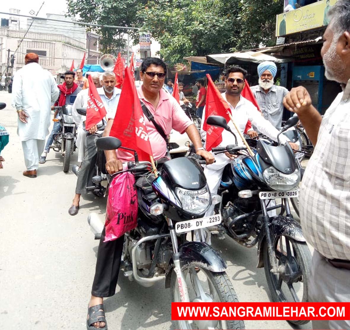 ਗੁਰਾਇਆ : ਦਿਹਾਤੀ ਮਜ਼ਦੂਰ ਸਭਾ ਵੱਲੋਂ ਆਰੰਭੇ ਜਥਾ ਮਾਰਚ ਦੇ ਅੱਜ ਪਿੰਡ ਦੁਸਾਂਝ ਕਲਾਂ ਪੁੱਜਣ ‘ਤੇ ਭਰਵਾਂ ਸਵਾਗਤ ਕੀਤਾ ਗਿਆ। ਇਸ ਮੌਕੇ ਮੀਟਿੰਗ ਨੂੰ ਸਭਾ ਦੇ ਸੂਬਾ ਪ੍ਰਧਾਨ ਸਾਥੀ ਦਰਸ਼ਨ ਨਾਹਰ ਅਤੇ ਸੂਬਾ ਜਨਰਲ ਸਕੱਤਰ ਸਾਥੀ ਗੁਰਨਾਮ ਸਿੰਘ ਦਾਊਦ ਨੇ ਸੰਬੋਧਨ ਕੀਤਾ। ਮਗਰੋਂ ਇਸ ਜਥੇ ਨੇ ਪਿੰਡ ਧੁਲੇਤਾ ਵਿਖੇ ਮੀਟਿੰਗ ਕੀਤੀ। ਮੀਟਿੰਗ ਉਪਰੰਤ ਇਸ ਜਥੇ ਨੇ ਗੁਰਾਇਆ ਸ਼ਹਿਰ ‘ਚ ਮਾਰਚ ਵੀ ਕੀਤਾ। ਜਿਸ ਦੀ ਅਗਵਾਈ ਮੋਟਰਸਾਈਕਲ ਸਵਾਰਾਂ ਨੇ ਕੀਤੀ।