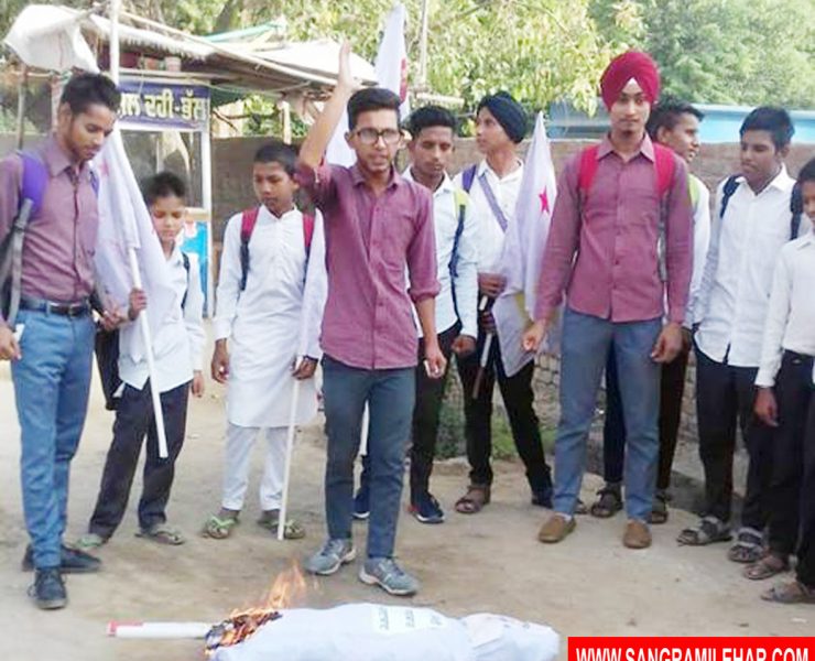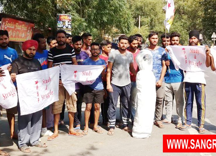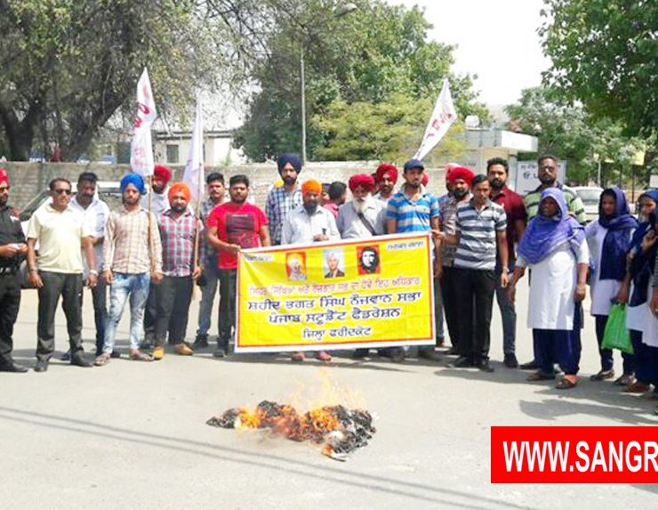 ਨੌਜਵਾਨ ਸਭਾ ਤੇ ਪੀ.ਅੈਸ.ਅੈਫ. ਵੱਲੋਂ ਅਰਥੀ ਫੂਕ ਮੁਜ਼ਾਹਰਾ