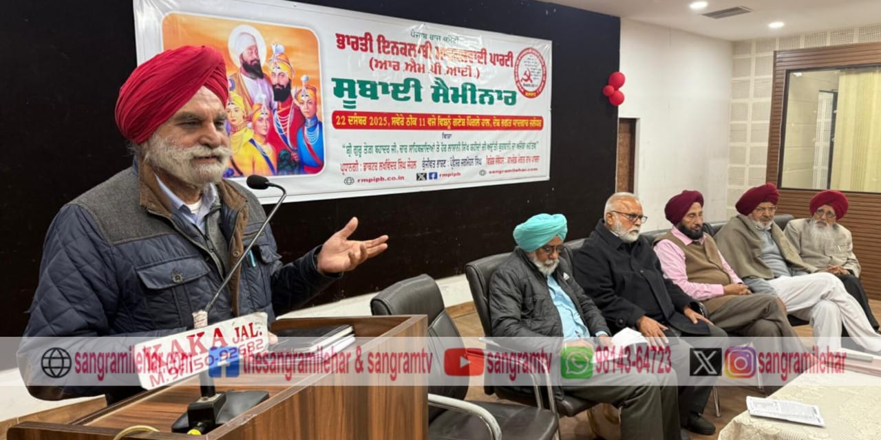 ਜਲੰਧਰ: ਭਾਰਤੀ ਇਨਕਲਾਬੀ ਮਾਰਕਸਵਾਦੀ ਪਾਰਟੀ (ਆਰ.ਐਮ.ਪੀ.ਆਈ.) ਦੀ ਪੰਜਾਬ ਰਾਜ ਕਮੇਟੀ ਵਲੋਂ ‘ਦੇਸ਼ ਭਗਤ ਯਾਦਗਾਰ ਜਲੰਧਰ‘ ਦੇ ‘ਗਦਰੀ ਸ਼ਹੀਦ ਵਿਸ਼ਨੂੰ ਗਣੇਸ਼ ਪਿੰਗਲੇ ਹਾਲ‘ ਵਿਖੇ ਨਾਮਵਰ ਵਿਦਵਾਨ ਡਾਕਟਰ ਲਖਵਿੰਦਰ ਸਿੰਘ ਜੌਹਲ ਦੀ ਪ੍ਰਧਾਨਗੀ ਹੇਠ ਪ੍ਰਭਾਵਸ਼ਾਲੀ ਸੂਬਾਈ ਸੈਮੀਨਾਰ ਆਯੋਜਿਤ ਕੀਤਾ ਗਿਆ।