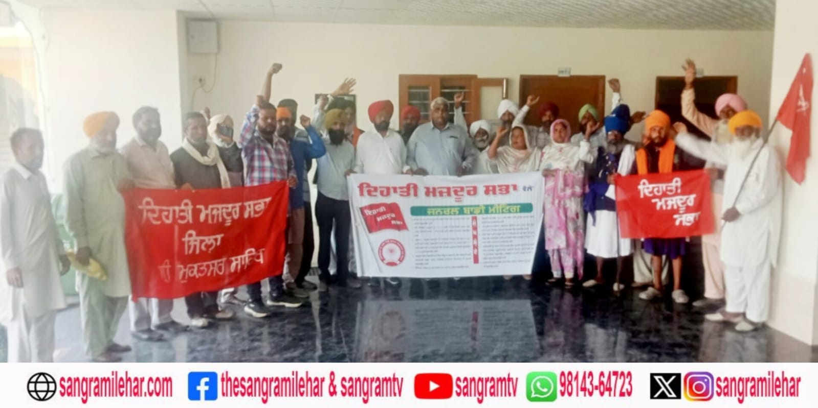 ਸ੍ਰੀ ਮੁਕਤਸਰ ਸਾਹਿਬ: ਦਿਹਾਤੀ ਮਜ਼ਦੂਰ ਸਭਾ ਜਿਲਾ ਸ੍ਰੀ ਮੁਕਤਸਰ ਸਾਹਿਬ ਦੀ ਜਨਰਲਬਾਡੀ ਮੀਟਿੰਗ ਜ਼ਿਲ੍ਹਾ ਪ੍ਰਧਾਨ ਸਾਥੀ ਲਖਵੀਰ ਸਿੰਘ ਤਖਤਮੁਲਾਣਾ ਦੀ ਪ੍ਰਧਾਨਗੀ ਹੇਠ ਹੋਈ, ਜਿਸ ਵਿੱਚ ਜ਼ਿਲ੍ਹੇ ਵਿਚੋਂ ਦੋ ਦਰਜਨ ਤੋਂ ਵੱਧ ਸਰਗਰਮ ਸਾਥੀਆਂ ਨੇ ਹਿੱਸਾ ਲਿਆ। ਮੀਟਿੰਗ ਨੂੰ ਸੰਬੋਧਨ ਕਰਦਿਆਂ ਸਾਥੀ ਦਰਸ਼ਨ ਨਾਹਰ ਸੂਬਾ ਪ੍ਰਧਾਨ ਦਿਹਾਤੀ ਮਜ਼ਦੂਰ ਸਭਾ ਨੇ ਕਿਹਾ ਕਿ ਜਥੇਬੰਦੀ ਨੂੰ ਮਜਬੂਤ ਕਰਨ ਤੋਂ ਬਿੰਨਾ ਕੋਈ ਵੀ ਘੋਲ ਜਿਤਿਆ ਨਹੀਂ ਸਕਦਾ, ਇਸ ਵਾਸਤੇ ਜਥੇਬੰਦੀ ਦੀਆਂ ਪਿੰਡਾਂ ਚ ਸ਼ਖਾਵਾਂ ਦੀ ਮਜਬੂਤੀ ਬਹੁਤ ਜ਼ਰੂਰੀ ਹੈ ਤੇ ਪੂਰੇ ਮੁਕਤਸਰ ਜ਼ਿਲ੍ਹੇ ਅੰਦਰ ਘਣੇ ਪਸਾਰੇ ਦੀ ਲੋੜ ਹੈ। ਸਾਥੀ ਨਾਹਰ ਨੇ 8 ਅਪ੍ਰੈਲ ਨੂੰ ਦੇਸ਼ ਭਗਤ ਯਾਦਗਾਰ ਹਾਲ ਜਲੰਧਰ ਦੇ ਵਿਹੜੇ ਕੀਤੀ ਜਾ ਰਹੀ ਸੂਬਾ ਪੱਧਰੀ ਵਿਸ਼ਾਲ ਰੈਲੀ ਦੀ ਕਾਮਯਾਬੀ ਲਈ ਜ਼ਿਲ੍ਹੇ ਵਿਚੋਂ ਭਾਰੀ ਗਿਣਤੀ ਵਿੱਚ ਮਿਹਨਤੀ ਮਰਦ ਔਰਤਾਂ ਨੂੰ ਸ਼ਾਮਲ ਕਰਾਉਣ ਲਈ ਅਪੀਲ ਵੀ ਕੀਤੀ। ਮੀਟਿੰਗ ਨੂੰ ਸਾਥੀ ਜਗਜੀਤ ਸਿੰਘ ਜੱਸੇਆਣਾ, ਸਾਥੀ ਹਰਜੀਤ ਸਿੰਘ ਮਦਰੱਸਾ ਨੇ ਵੀ ਸੰਬੋਧਨ ਕੀਤਾ।