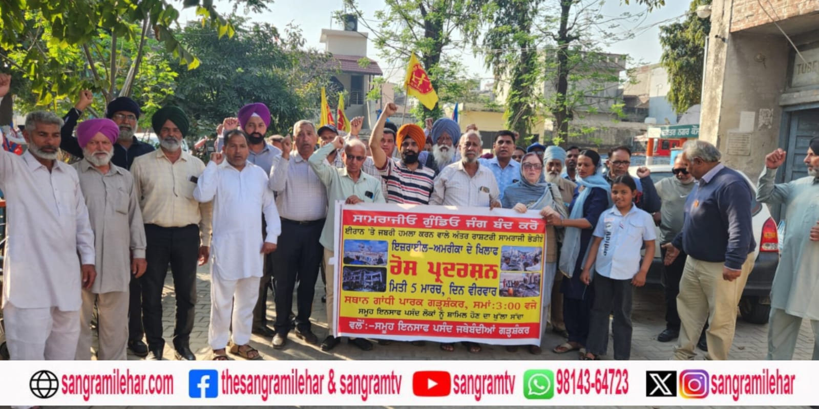 ਗੜਸ਼ੰਕਰ: ਅਮਰੀਕਾ ਤੇ ਇਜਰਾਈਲ ਧਾੜਵੀਆਂ ਵਲੋਂ ਇਰਾਨ ‘ਤੇ ਕੀਤੇ ਜਬਰੀ ਹਮਲੇ ਅਤੇ ਨਿਰਦੋਸ਼ ਲੋਕਾਂ ਦੇ ਕਤਲੇਆਮ ਦੇ ਖਿਲਾਫ ਗੜ੍ਹਸ਼ੰਕਰ ਦੀਆਂ ਜਮਹੂਰੀ,ਅਮਨ ਪਸੰਦ ਅਤੇ ਸੰਘਰਸ਼ਸ਼ੀਲ ਜਥੇਬੰਦੀਆਂ ਵੱਲੋਂ ਗਾਂਧੀ ਪਾਰਕ ਰੋਸ ਰੈਲੀ ਕਰਨ ਉਪਰੰਤ ਸ਼ਹਿਰ ਵਿੱਚ ਰੋਸ ਭਰਪੂਰ ਮਾਰਚ ਕੀਤਾ ਗਿਆ, ਜਿਸ ਦੀ ਅਗਵਾਈ ਵੱਖ ਵੱਖ ਸੰਘਰਸ਼ਸ਼ੀਲ ਜਥੇਬੰਦੀਆਂ ਦੀਆਂ ਆਗੂਆਂ ਨੇ ਕੀਤੀ।