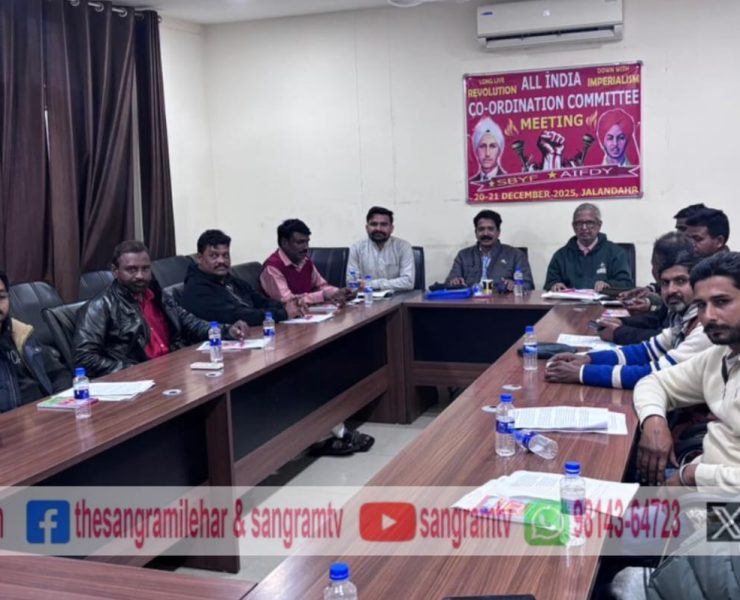 ਜਲੰਧਰ: ਸਥਾਨਕ ‘ਸ਼ਹੀਦ ਸਰਵਣ ਸਿੰਘ ਚੀਮਾ ਟਰੱਸਟ ਬਿਲੰਡਿੰਗ’ ਵਿਖੇ ਕੀਤੀ ਗਈ ਦੋ-ਰੋਜਾ ਮੀਟਿੰਗ ਵਿਚ ਸ਼ਾਮਲ ਹੋਏ ਦੇਸ਼ ਦੇ 10 ਸੂਬਿਆਂ ਦੇ ਵੱਖੋ-ਵੱਖ ਯੁਵਕ ਸੰਗਠਨਾਂ ‘ਚ ਕਾਰਜਸ਼ੀਲ ਨੌਜਵਾਨ ਆਗੂਆਂ ਨੇ ਭਰਵੀਂ…