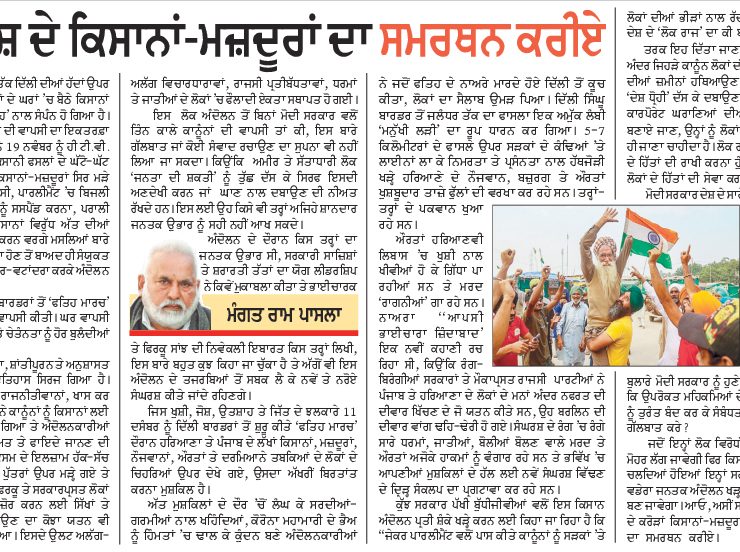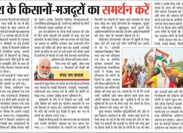 ਅਸੀਂ ਦੇਸ਼ ਦੇ ਕਿਸਾਨਾਂ-ਮਜ਼ਦੂਰਾਂ ਦਾ ਸਮਰਥਨ ਕਰੀਏ