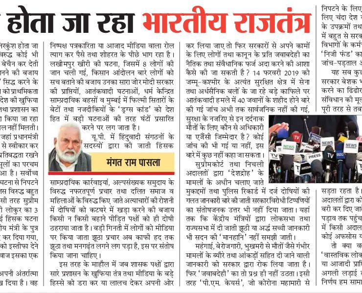 ਤਾਨਾਸ਼ਾਹ ਹੁੰਦਾ ਜਾ ਰਿਹਾ ਭਾਰਤੀ ਰਾਜਤੰਤਰ