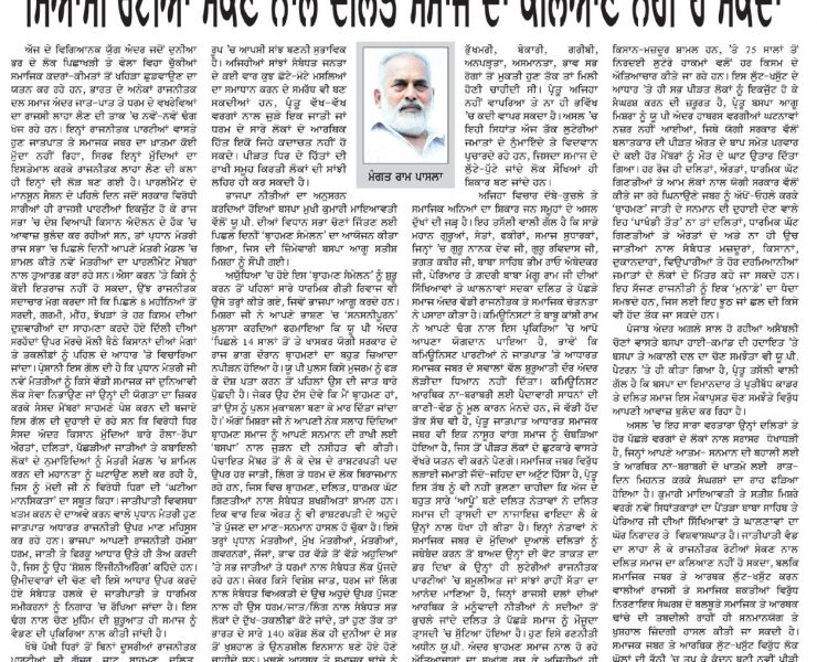 ਸਿਆਸੀ ਰੋਟੀਆਂ ਸੇਕਣ ਨਾਲ ਦਲਿਤ ਸਮਾਜ ਦਾ ਕਲਿਆਣ ਨਹੀਂ ਹੋ ਸਕਦਾ