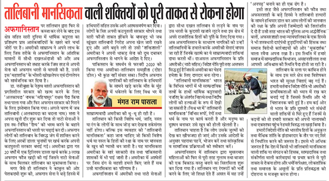ਤਾਲਿਬਾਨੀ ਮਾਨਸਿਕਤਾ ਵਾਲੀਆਂ ਸ਼ਕਤੀਆਂ ਨੂੰ ਪੂਰੀ ਤਾਕਤ ਨਾਲ ਰੋਕਣਾ ਹੋਵੇਗਾ