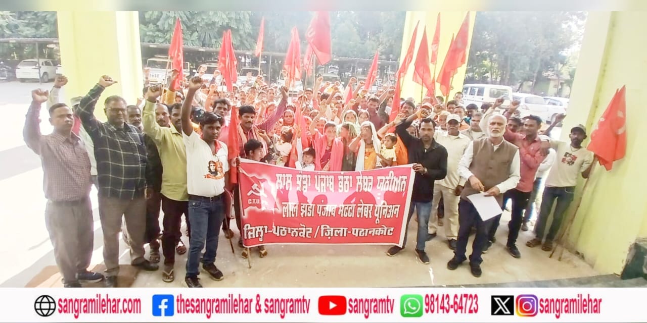 ਪਠਾਨਕੋਟ: ਭੱਠਿਆਂ ਉੱਪਰ ਮਜ਼ਦੂਰਾਂ ਨੂੰ ਰਹਿਣ ਸਬੰਧੀ ਪੇਸ਼ ਆ ਰਹੀਆਂ ਮੁਸ਼ਕਲਾਂ ਦੂਰ ਕਰਨ ਲਈ ਲਾਲ ਝੰਡਾ ਪੰਜਾਬ ਭੱਠਾ ਲੇਬਰ ਯੂਨੀਅਨ ਦੀ ਅਗਵਾਈ ਹੇਠ ਡਿਪਟੀ ਕਮਿਸ਼ਨਰ ਜ਼ਿਲ੍ਹਾ ਪਠਾਨਕੋਟ ਡਾਕਟਰ ਪੱਲਵੀ ਨੂੰ ਮੰਗ ਪੱਤਰ ਦਿੱਤਾ ਗਿਆ।