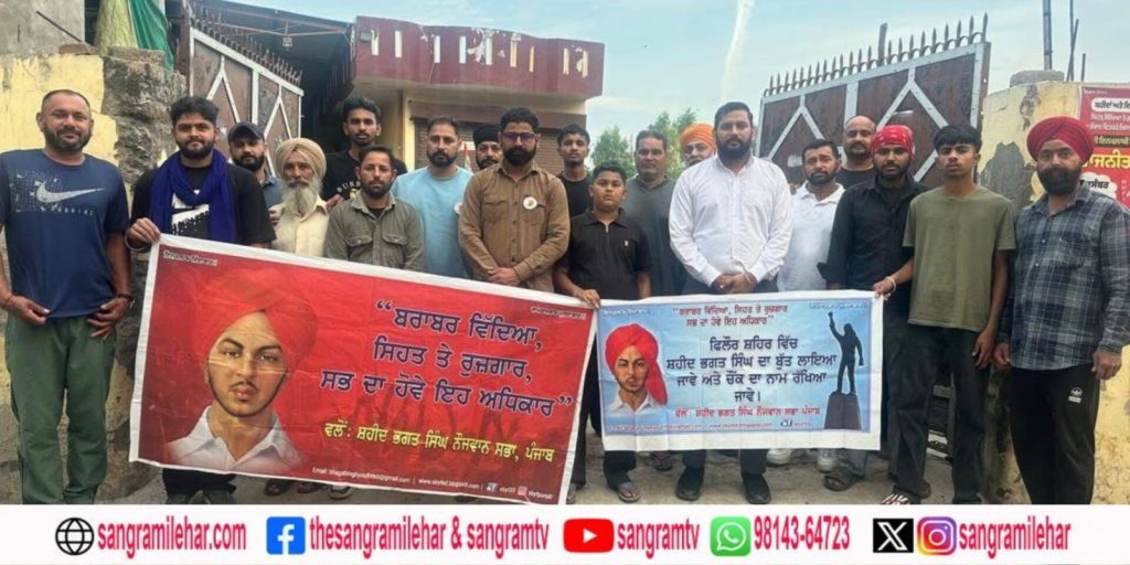 ਫਿਲੌਰ: ਸ਼ਹੀਦ ਭਗਤ ਸਿੰਘ ਨੌਜਵਾਨ ਸਭਾ ਵਲੋਂ 23 ਮਾਰਚ ਦੇ ਸ਼ਹੀਦਾਂ ਦੇ ਬੁੱਤ ਫਿਲੌਰ ਸ਼ਹਿਰ ਅੰਦਰ ਲਗਾਉਣ ਦੀ ਮੰਗ ਨੂੰ ਲੈ ਕੇ 30 ਮਾਰਚ ਨੂੰ ਸ਼ਹਿਰ ਅੰਦਰ ਧਰਨਾ ਪ੍ਰਦਰਸ਼ਨ ਕੀਤਾ ਜਾਵੇਗਾ। ਜਿਸ ਦੇ ਸੰਬੰਧ ਵਿਚ ਅੱਜ ਸ਼ਹਿਰ ਅੰਦਰ ਨੌਜਵਾਨ ਸਭਾ ਦੀ ਮੀਟਿੰਗ ਕੀਤੀ ਗਈ।