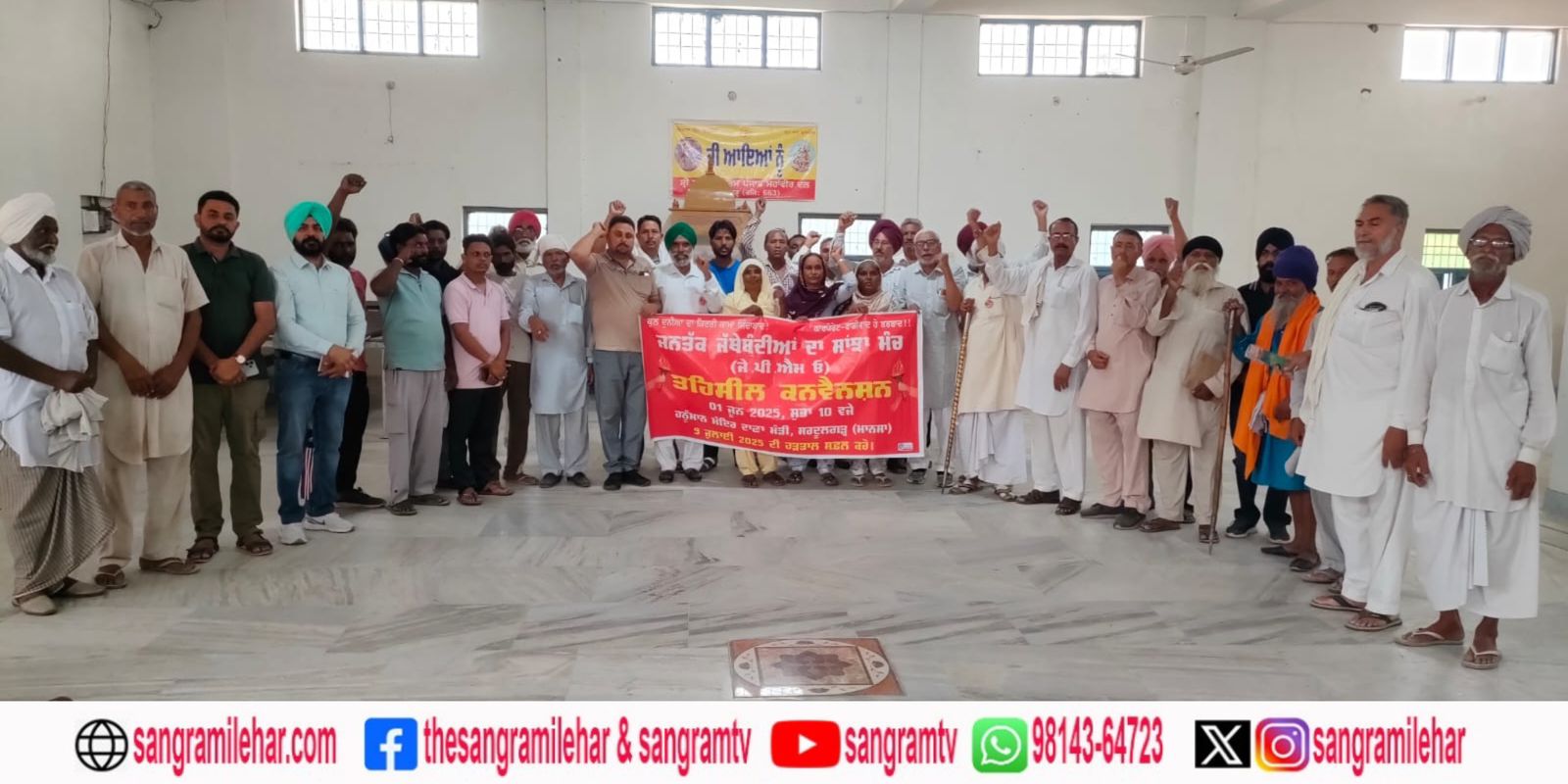 ਸਰਦੂਲਗੜ੍ਹ: ਸਥਾਨਕ ਸ਼੍ਰੀ ਹਨੂੰਮਾਨ ਮੰਦਰ ਵਿਖੇ ਸਰਵ ਸਾਥੀ ਆਤਮਾ ਰਾਮ ਸਰਦੂਲਗੜ੍ਹ, ਮੰਗਤ ਰਾਮ ਕਰੰਡੀ, ਪਰਮਜੀਤ ਕੌਰ ਰੋੜਕੀ, ਦਯਾ ਰਾਮ ਦੀ ਪ੍ਰਧਾਨਗੀ ਹੇਠ ‘ਜਨਤਕ ਜੱਥੇਬੰਦੀਆਂ ਦਾ ਸਾਂਝਾ ਮੰਚ’ (ਜੇਪੀਐਮਓ) ਦੀ ਤਹਿਸੀਲ ਪੱਧਰੀ ਕਨਵੈਨਸ਼ਨ ਸੱਦੀ ਗਈ। ਕਨਵੈਨਸ਼ਨ ਵਿਚ ਸੀਟੀਯੂ ਪੰਜਾਬ, ਦਿਹਾਤੀ ਮਜ਼ਦੂਰ ਸਭਾ, ਜਮਹੂਰੀ ਕਿਸਾਨ ਸਭਾ, ਪਸਸਫ 1406- 22 ਬੀ ਚੰਡੀਗੜ੍ਹ, ਸ਼ਹੀਦ ਭਗਤ ਸਿੰਘ ਨੌਜਵਾਨ ਸਭਾ, ਪੰਜਾਬ ਸਟੂਡੈਂਟਸ ਫੈਡਰੇਸ਼ਨ, ਗੌਰਮਿੰਟ ਟੀਚਰ ਯੂਨੀਅਨ, ਸਫਾਈ ਸੇਵਕ ਯੂਨੀਅਨ, ਮਨਰੇਗਾ ਵਰਕਰ ਯੂਨੀਅਨ, ਪੰਜਾਬ ਨਿਰਮਾਣ ਮਜ਼ਦੂਰ ਯੂਨੀਅਨ ਦੇ ਨੁਮਾਇੰਦੇ ਸ਼ਾਮਲ ਹੋਏ।